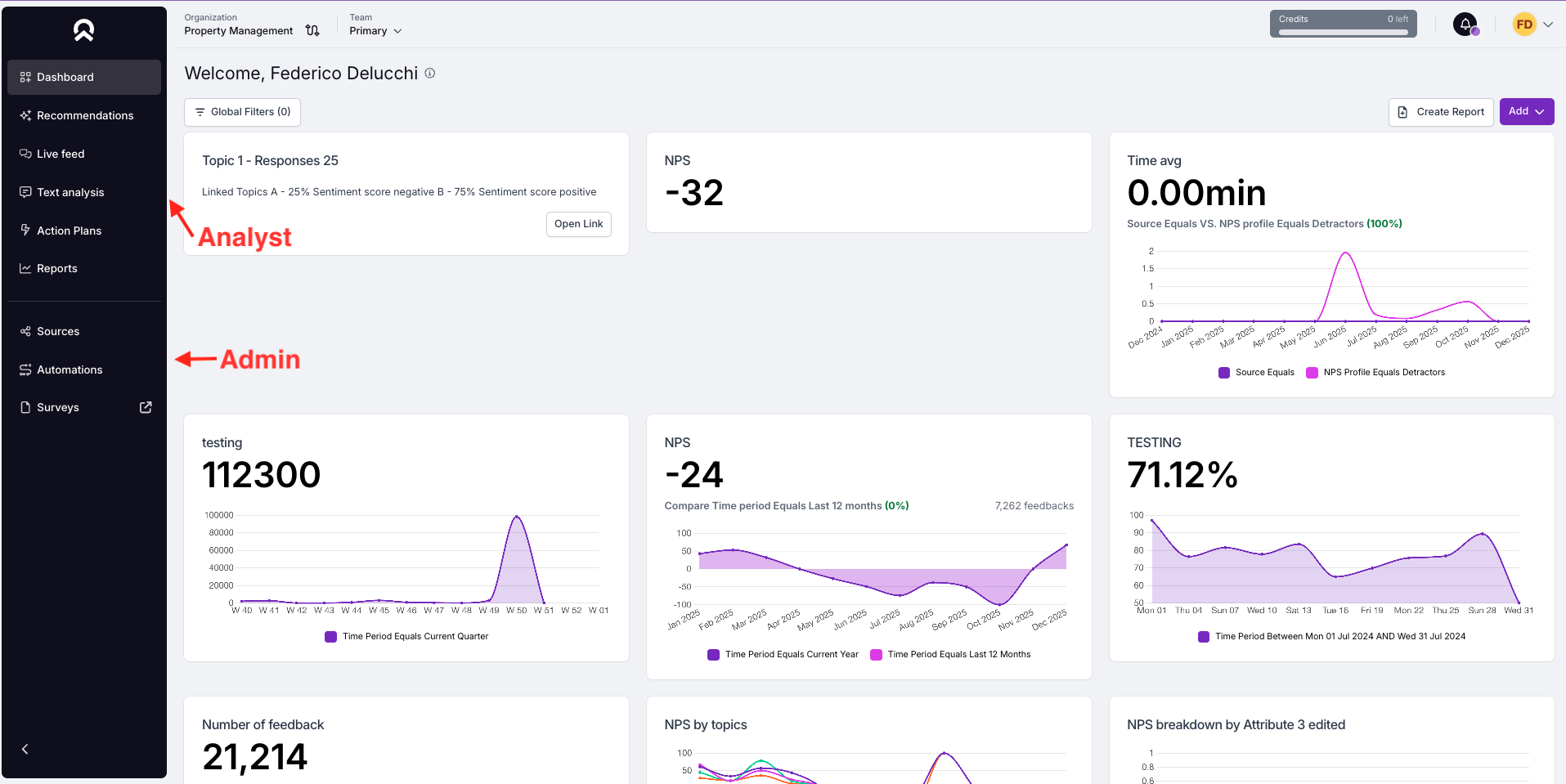 Feedier 4.0 introduces a fully redesigned navigation, moving from a horizontal menu to a vertical navigation, structured around two distinct customer journeys: