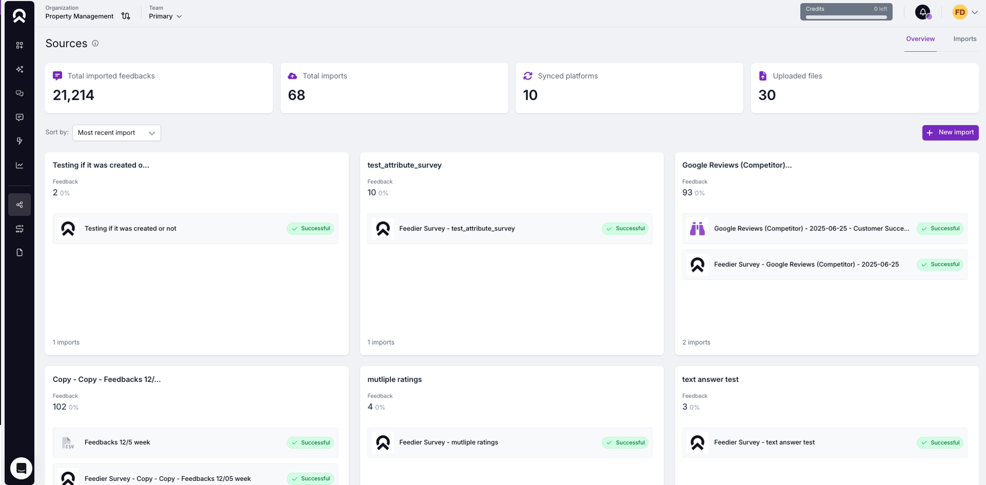A new import type allows you to sync feedback from Feedier Surveys into Sources.