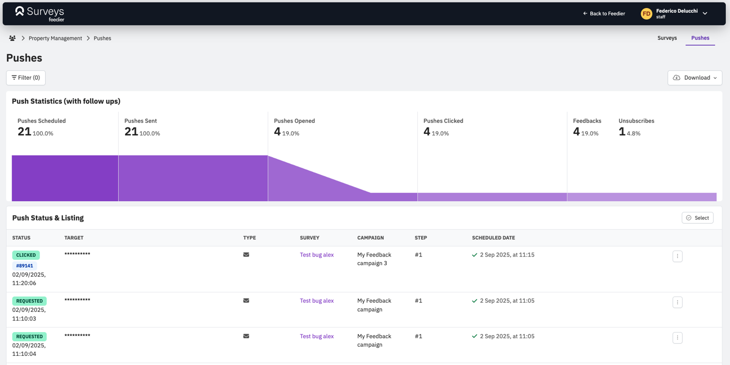 - Pushes are a new page in Feedier Surveys